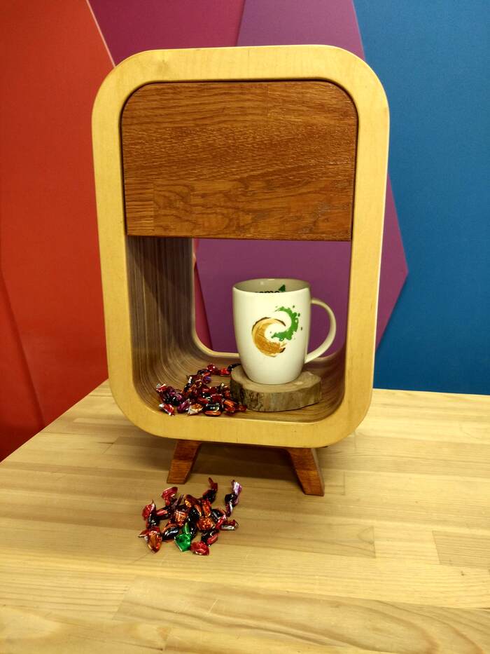Я учил обычных людей делать поделки из дерева, а сам учился у старших товарищей.Например, я еще толком не умел работать с лаками и залил эти тумбы так, что ящики прилипли и не открывались)