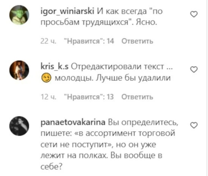 На хлебозавод обрушилась критика местных жителей, которые взывали к совести начальства. Кстати, директором оказалась депутат Заксобрания Краснодарского края и член партии "Единая Россия" Татьяна Рой. Только вот после ажиотажа в соцсетях и СМИ помощница депутата заявила изданию "Подъём": "Там сменился руководитель, Татьяна Геннадьевна ушла. Она директором не работает с декабря месяца. Сейчас там другой начальник и, видимо, про этот блокадный хлеб он придумал". Получив массу негатива от геленджичан, пост в соцсети был несколько раз изменён, и теперь там появилась приписка: "На предприятие поступали просьбы от жителей и гостей Геленджика о включении хлеба «Блокадного» в ассортимент торговой сети. Однако мы приняли решение этого не делать, чтобы не оскорблять чувства людей, перенёсших блокаду". Но местные жители всё равно заметили продажу "блокадного хлеба" в фирменных магазинах: