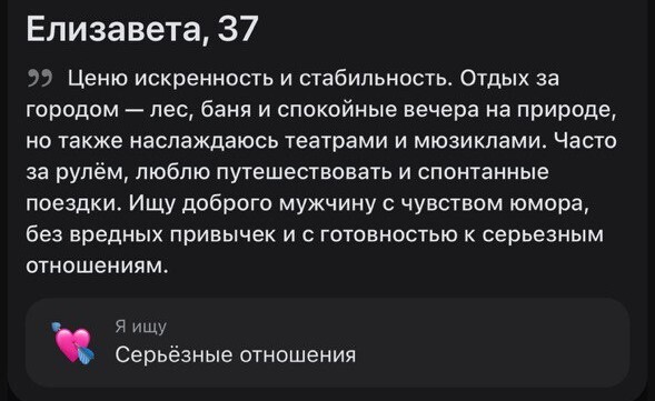 Есть ряд анкет, которые видно сразу. И даже не надо листать вниз, чтобы узнать, что там написано дальше. Я о рспхах. Чем отличаются? А они слишком заебись. Это женщина 34-37 лет, в душе и по анкете. Красивая, ухоженная, высокая, статная. В профиле написаны правильные и интересные вещи, ну например, за 37 секунд найденная анкета в свободном поиске: