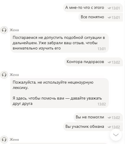 Далее я прошу его отменить заказ, он не отменяет, сказал что отменит как мы выйдем. И тут я решаю проверить его, говорю: ты мне даёшь слово что как мужик поступишь и отменишь заказ! На что получил утвердительный ответ.
