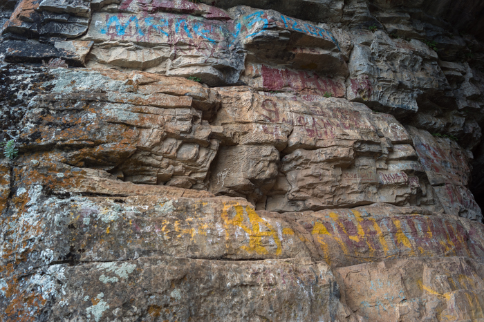 К сожалению пещера уже не та что прежде. Наскальные рисунки современности.