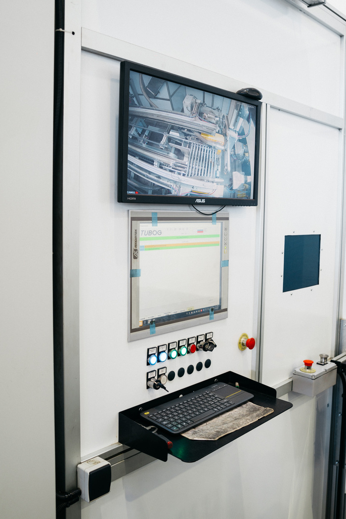 Теперь трубы автоматически нарезают под необходимых размер и направляют в другой цех