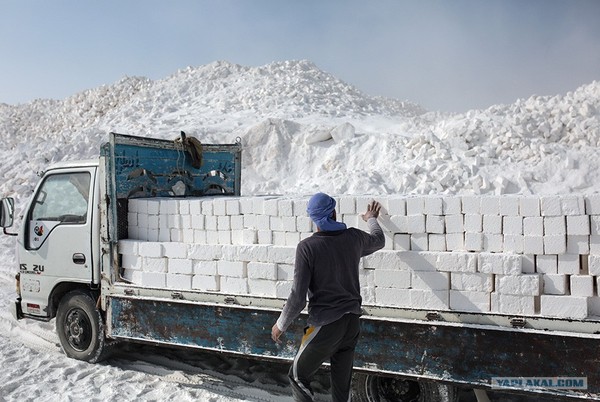 Интересный факт - рабочие, занятые на разработке этого месторождения, часто проводят отпуск на работе =) Кризис, деньги, зарплаты, лето, жаркое солнце, 2 озера в двух шагах от карьера, вкусный обед, загар - и никаких Египтов и Турций им не нужно =)