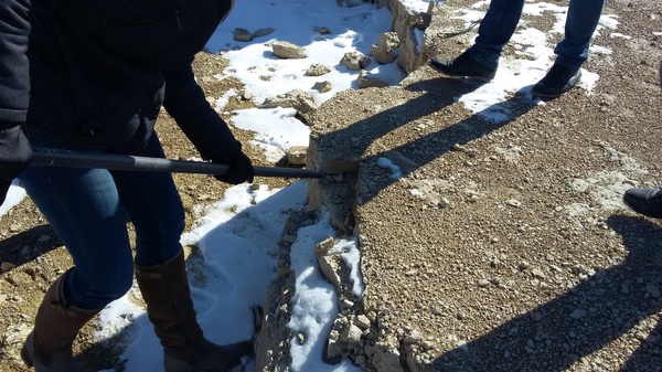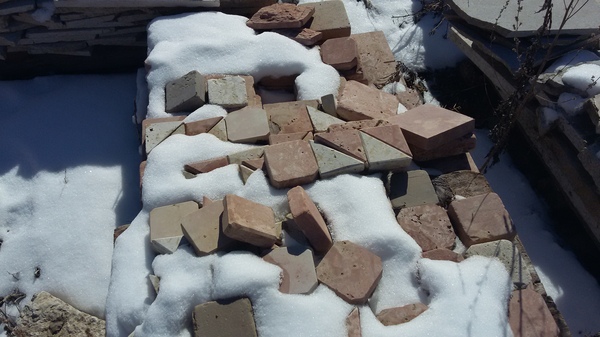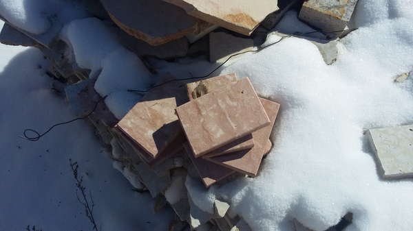 Две такие вот стопки, каждая в человеческий рост высотой, каждая примерно по 1 кубометру камня - считаются хорошей выработкой за 10-часовой рабочий день. Конечно, на конкретно этом месторождении сложно спрогнозировать добычу, потому что день на день не приходится - иногда попадаются легко добывающиеся пласты, и два куба в день - это нормальный рабочий темп. А иногда пласт неудачный, тяжелый, или наоборот, крошится как песок, и тогда ежедневная добыча опускается до 0,2-0,3 кубометра. В общем, всё индивидуально =)