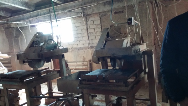 Блочность у такого известняка небольшая, поэтому что распиловка заготовок, что торцовка - нет необходимости в огромных станках, обходятся вот такими малышами =) Станки расположены не абы как, а в строго определенной последовательности. Например, пилы для распиловки блоков не сгруппированы в одной части цеха, и разбросаны по линии, чтобы у операторов не было необходимости бегать по всему цеху, а можно было организовать непрерывное движение в одном направлении - с распиловки блока на торцовку, с торцовки на заколку, и т.д. Таким образом, в одном цеху по сути организовано две - три отдельных полноценных линии для распиловки и обработки известняка.