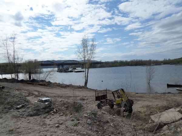 Спустившись еще ниже наткнулась на рабочую зону, служебные помещения, огромные махины по какой-то переработке камня и прочие постройки. Здесь я тоже умудрилась заблудиться и на мое счастье мне встретился какой-то работник, у которого я и спросила как мне выехать из этого места. После объяснений я таки нашла дорогу и въехала в саму рабочую зону, как ни странно спокойно, даже пришлось ломиться в кпп, чтобы у какого-то дяденьки уточнить, туда ли я все-таки еду. Видимо туристы наподобие меня там частое явление. Разве что собаки облаяли, но сегодня на меня лаяли абсолютно все встречные собаки, так что не страшно. Фотографировать и снимать все же не стала, чтобы не подумали, что я собираю информацию об этом месте, мало ли, может секретный объект какой, еще я тут все фотографирую, да и обстановка не располагала, чувствовалось, что посторонним людям тут не место. В итоге я все-таки выехала к Сокскому мосту, как и хотела.