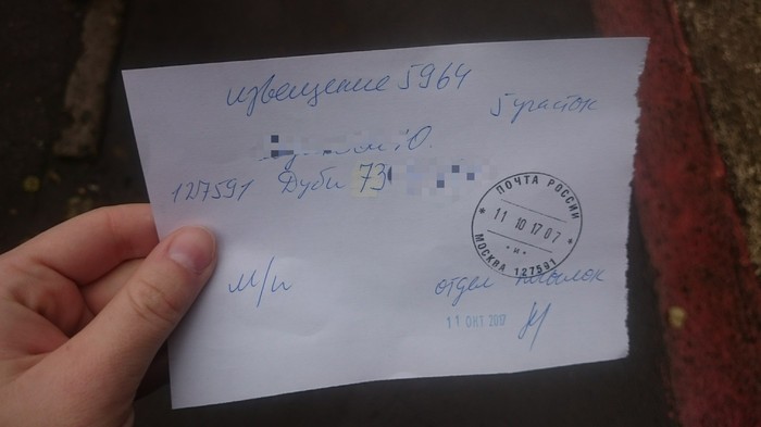 Неделю назад был пост об извещении о чужой посылке на почту.