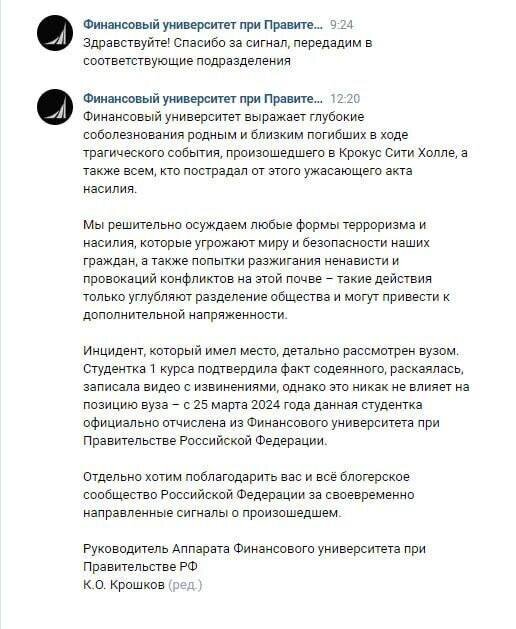 Ответ на пост «Студентку отчислили из вуза за насмешку над погибшими в "Крокусе"»3