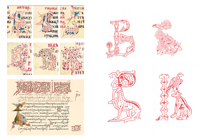 Вдохновились стилем, характерным для Великого Новгорода в раннее средневековье. Именно новгородцы первые начали использовать образы зверей для оформления буквиц, дело было в XII веке.