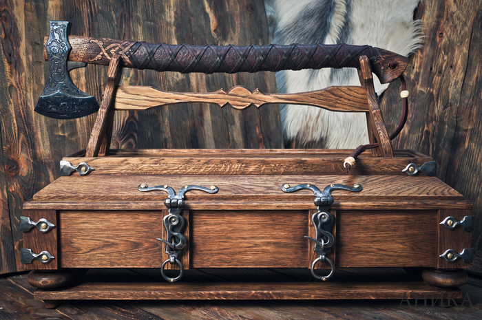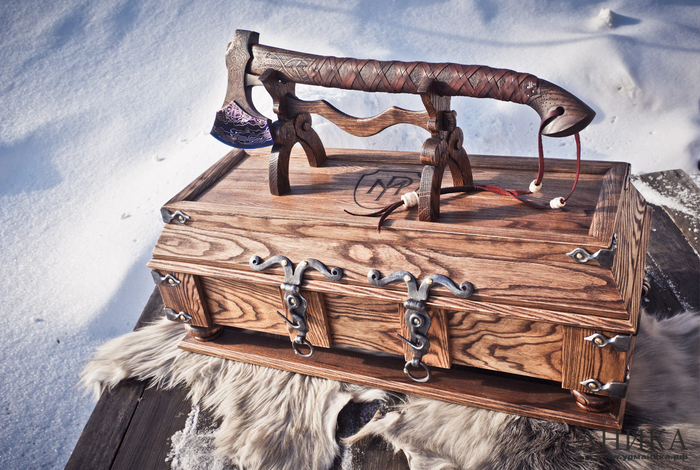 А потом подумали. Топор будут дарить. Даже не дарить, а торжественно вручать при гостях и полном параде. Не в пакет же его положить. К тому же, его потом хранить нужно. Желательно, хранить удобно и красиво.