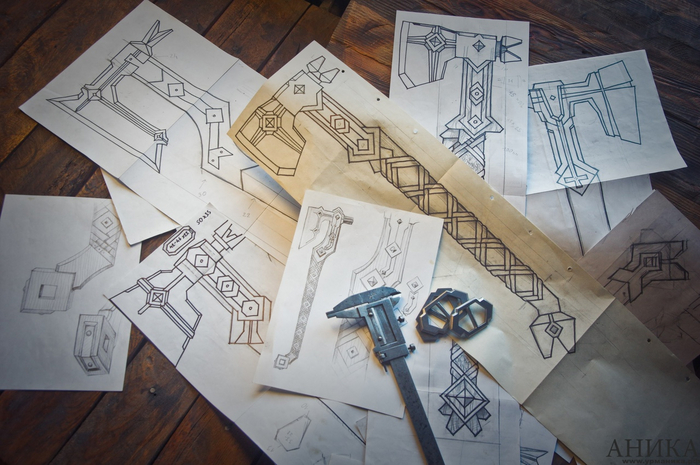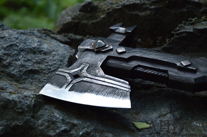 Задумка вместила в себя элементы от разных изделий. Вдохновлялись и топорами, и тесаками, и даже столовыми приборами гномов.