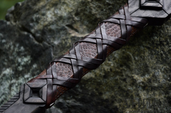 Добавили обтяжку и оплетку кожей, чтобы окончательно завершить образ боевого оружия. Вышло ладно. Лепо, как сказали бы средневековые новгородцы.