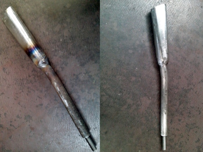 Делаем рукоятку. Берем трубку из сталь 3, пруток сталь 20 привариваем и прикрепляем к топору электрозаклепками: