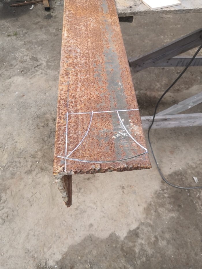 Получаем вот такую заготовку. делаем с запасом, чтобы перестраховаться, если что-то пойдет не так и придется переделать. Размечаем топор по шаблону: