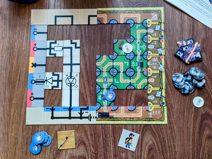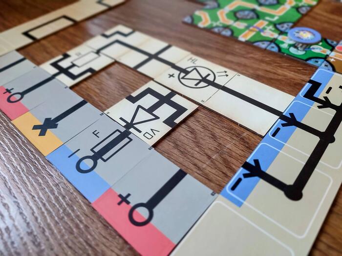 По механике логический абстракт на построение замкнутых цепочек и зарабатывание очков, по научной части — вводная в основы электрических цепей, так как чтобы играть, нужно изучить как течет ток, что такое резисторы и диоды, как можно подключать лампочки и светодиоды и что такое геркон и предохранитель.