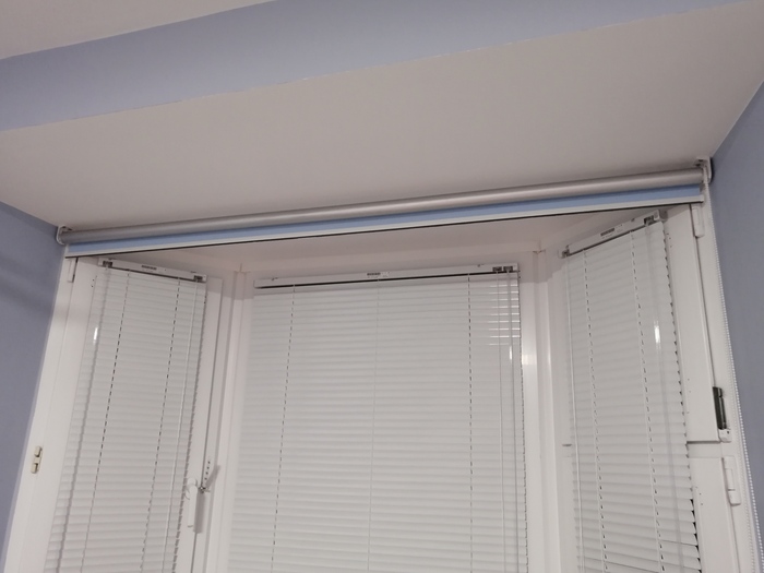 Заказали новые жалюзи и ночную штору на окна. С такой конструкцией эркера и стола, шторы блэкаут повесить не получается нормально.
