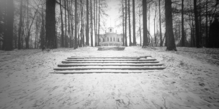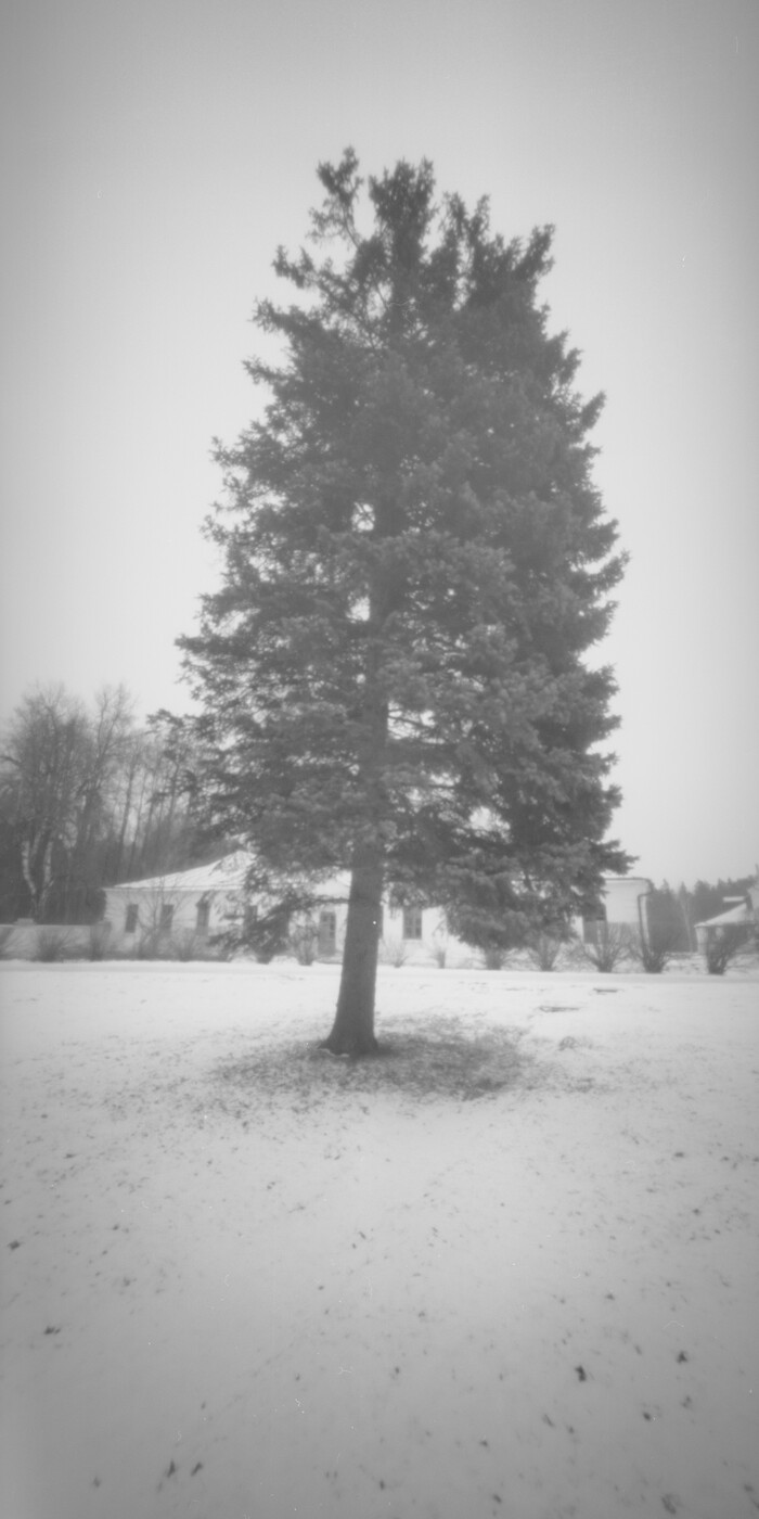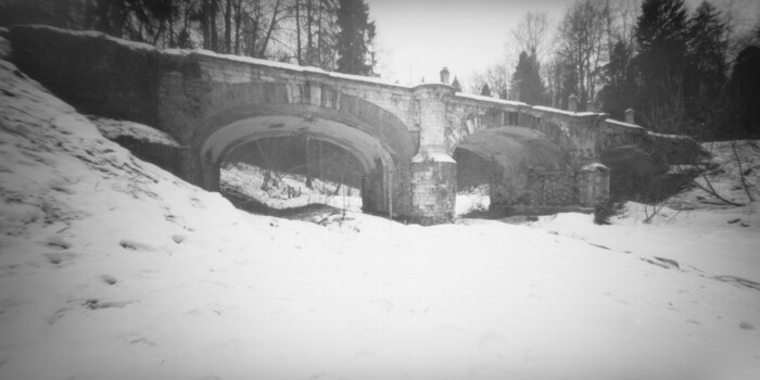 Вот несколько фотографий, которые я получил с помощью этой штуковины. При фокусном расстоянии (если можно так выразиться в контексте пинхола) в 40мм угол обзора составил примерно 110 градусов. Плёнку использовал Kentmere PAN 100.