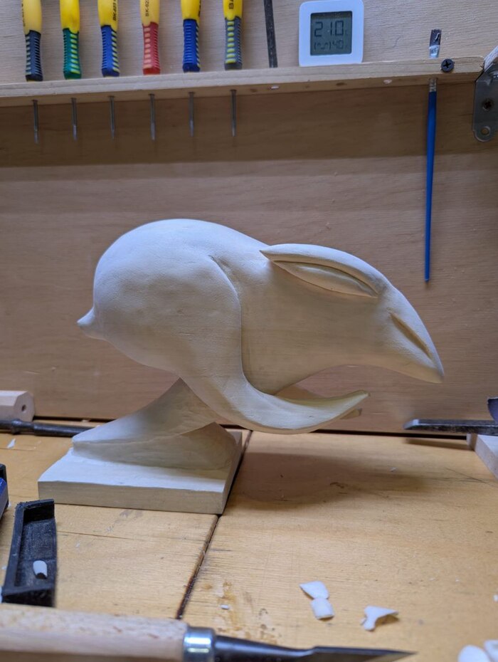 Самое сложное было выбрать пространство между передними лапами. Для вырезания нужна какая то специальная изогнутая стамеска, которой у меня не было. Пришлось повозиться.