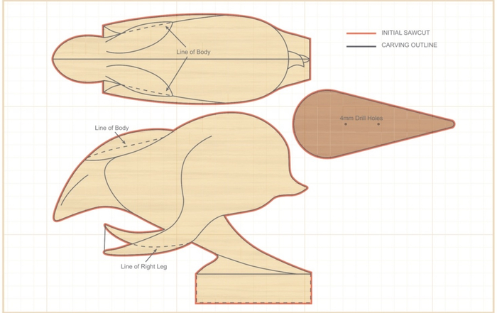 Выкройку обрисовал обычном тетрадном листке в клеточку просто на просвет подогнав масштаб под ширину имеющихся дощечек. Рисунок позволил мне понять какой высоты должна быть заготовка. Дощечки решил клеить бутербродом, так как это был единственный способ получить желаемого размера кубик из дерева.