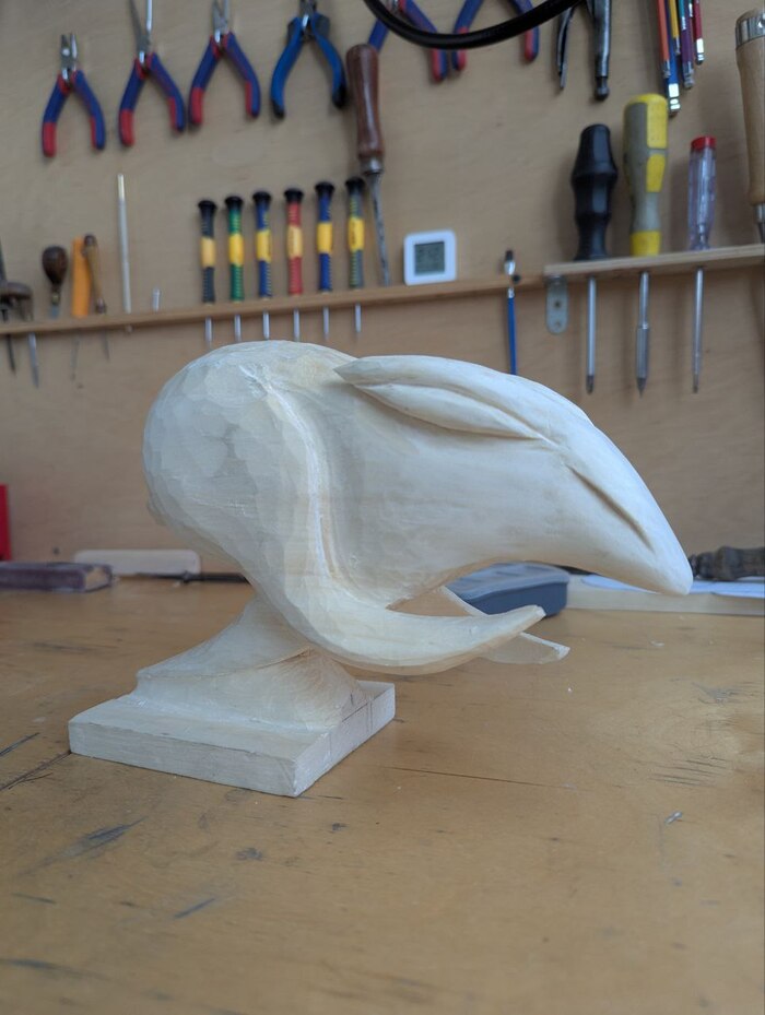 Примерно год занимаюсь резьбой по дереву. Выбрал для себя, как основное направление, скульптурную резьбу. Вот один из моих недавно завершенных проектов. Расскажу про основные этапы и ошибки. Итак: