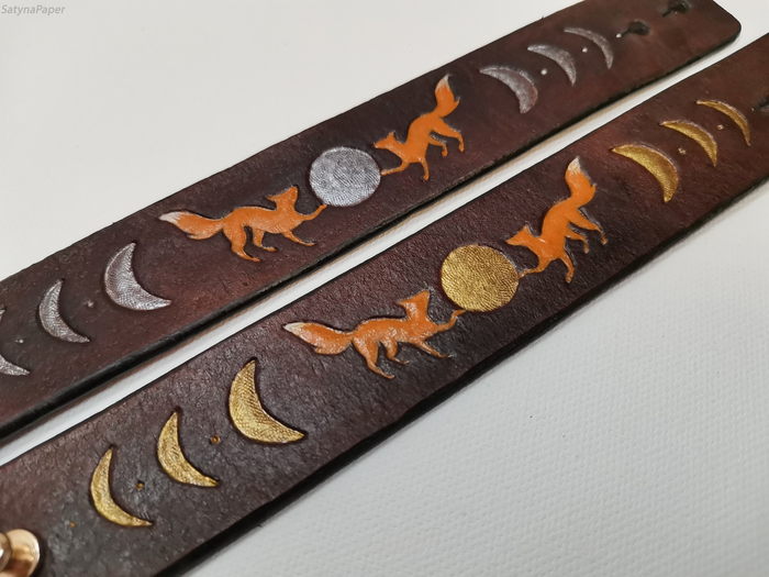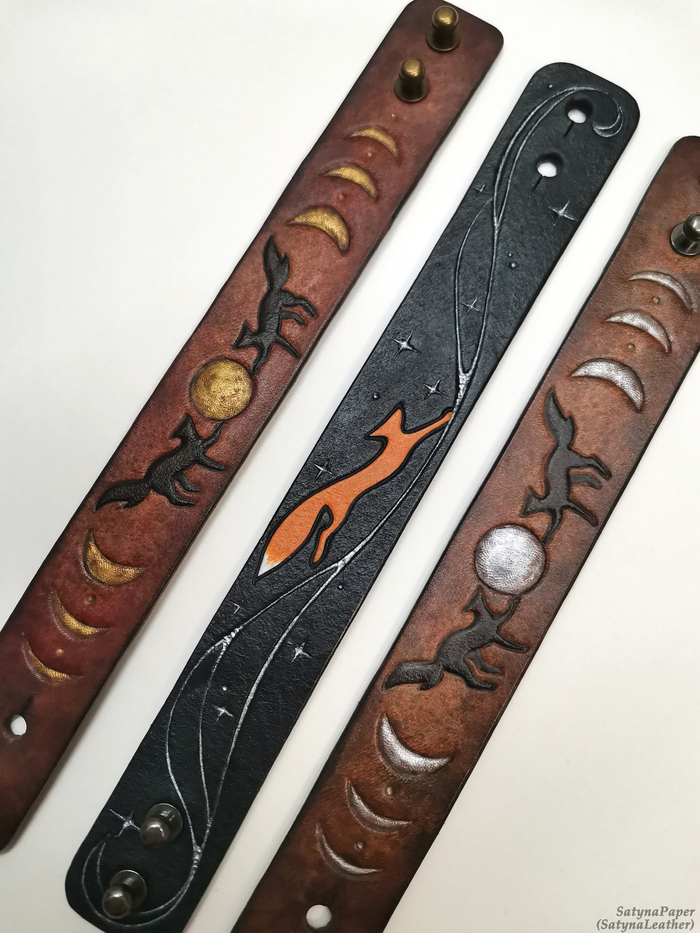 Браслеты с лунами я уже постила, но в этот раз решила сделать имитацию состаренной кожи вместо равномерной покраски.