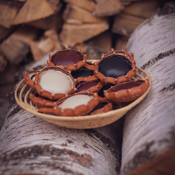 В процессе создания этих повязок потребовалось сделать около 8 образцов, чтобы добиться необходимой мягкости кожи при сохранении выпуклой формы. Для этого мы использовали касторовое масло, которое отлично размягчает кожу.