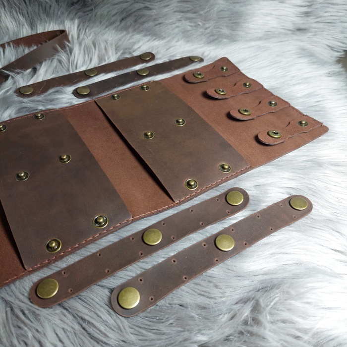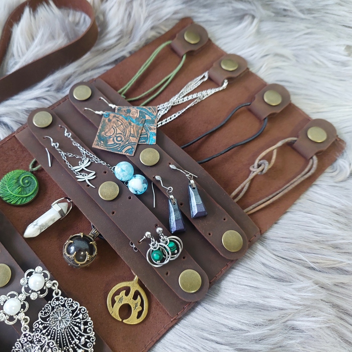 Задача была ясна - делаем стратегический кожаный органайзер-скрутку для украшений, чтобы брать их в путешествия, либо хранить дома в строгом порядке.