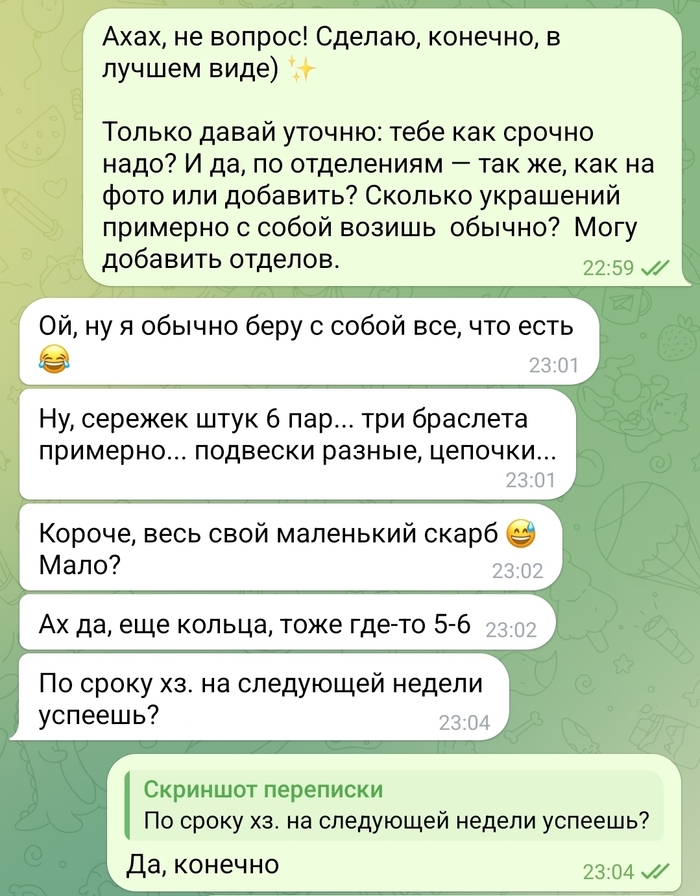 А еще взяли с женой ее цацки, чтобы протестировать органайзер до того, как отдавать)