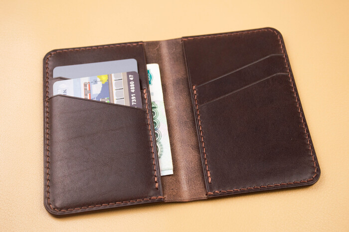 Картхолдер на кармане под кошель, отделения под карты из кожи козы.