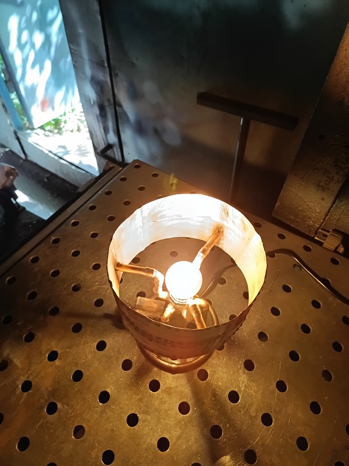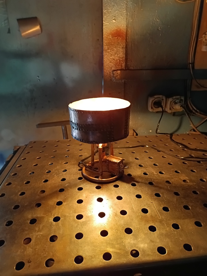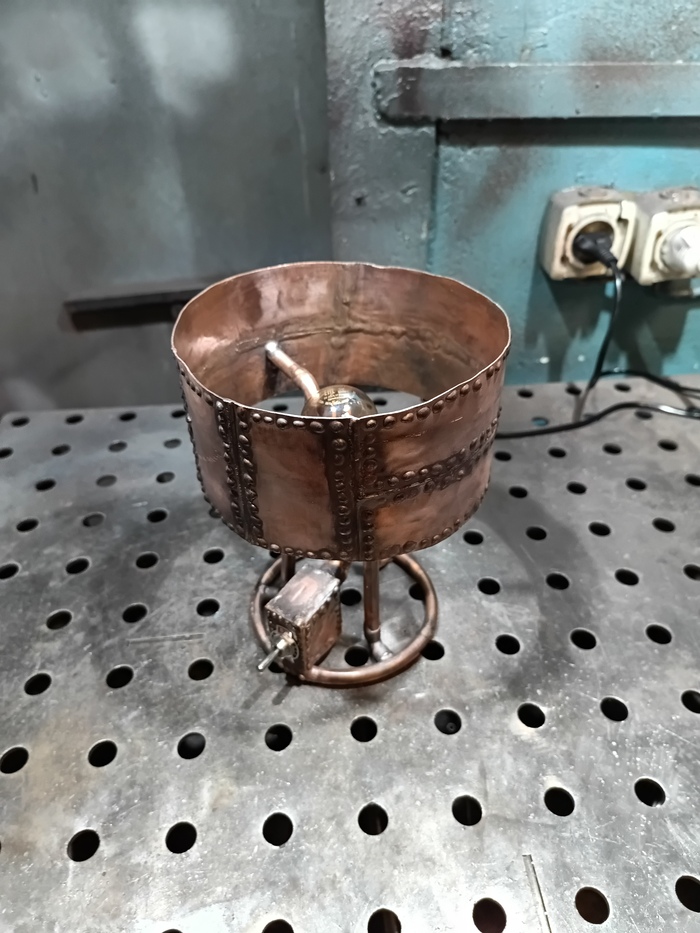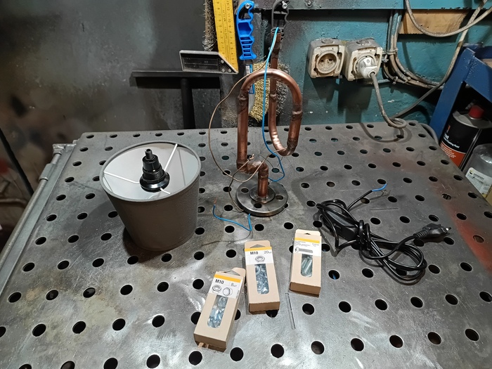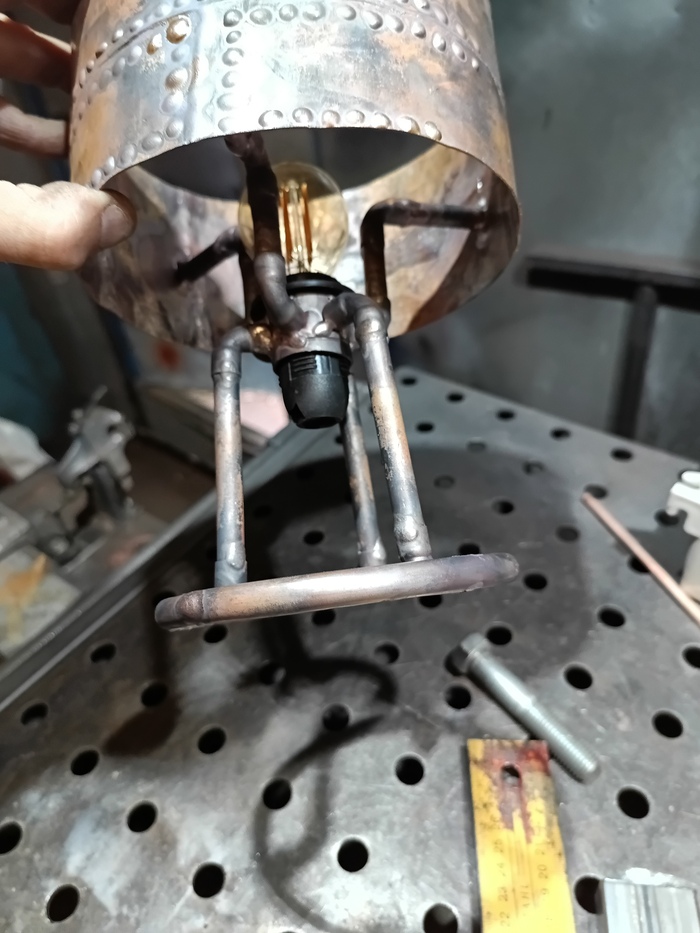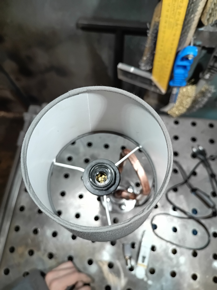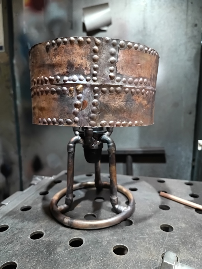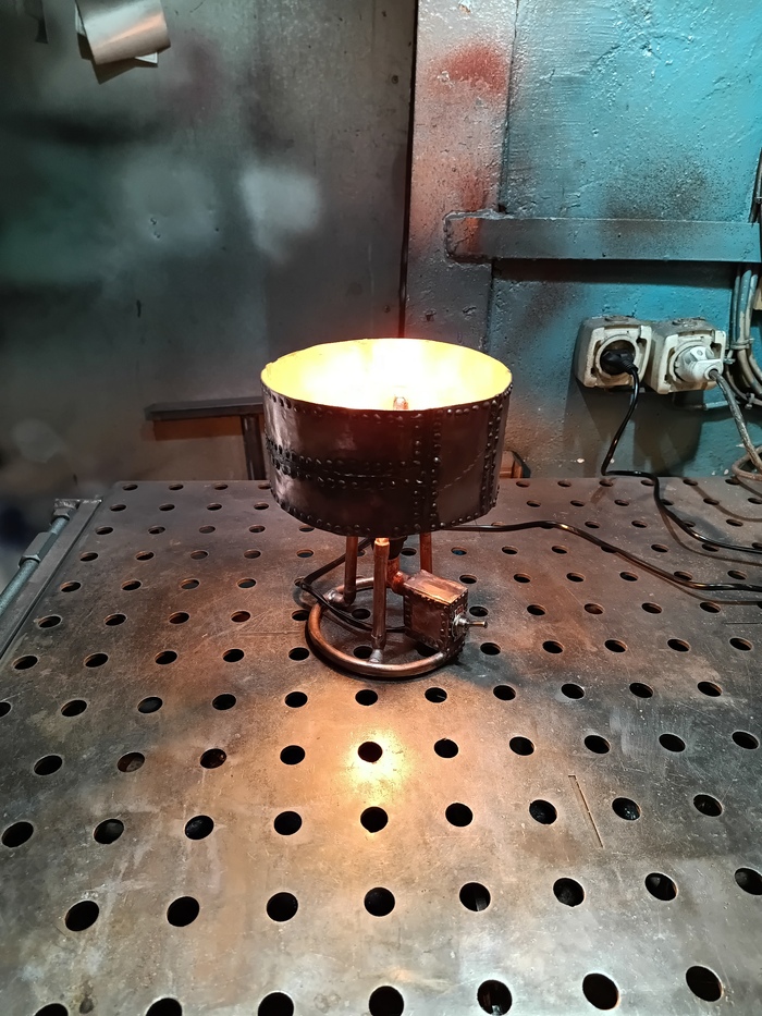 Второй торшерчик-ночник собирал опять из обрезков трубы от демонтажей, уже показывал это здесь: https://pikabu.ru/story/med_v_2d_13593585?utm_source=linkshare&utm_medium=sharing