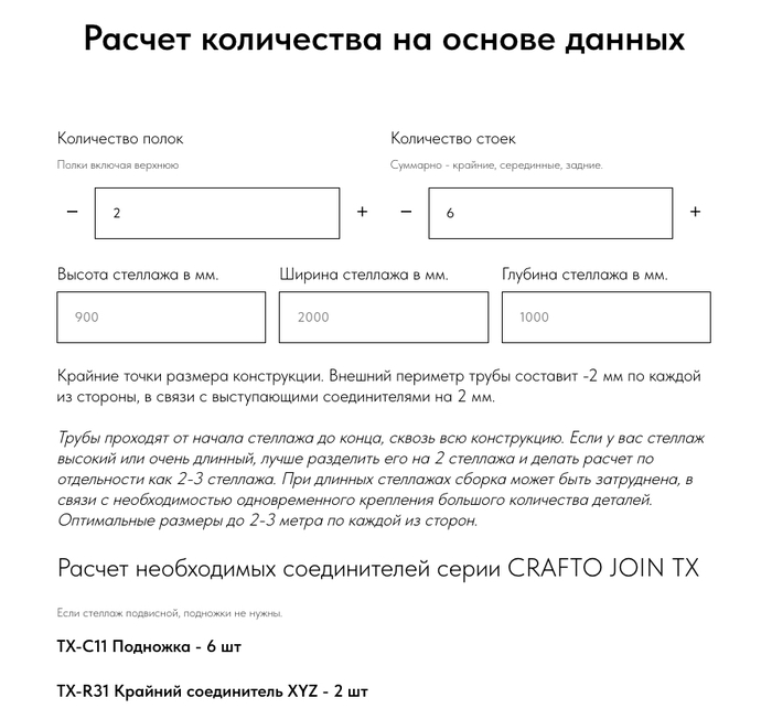 Далее написал простенький калькулятор, который считает сколько надо деталей и каких для сборки стеллажей или подпольев. Чуть позже допишу и сделаю больше вариантов использования.