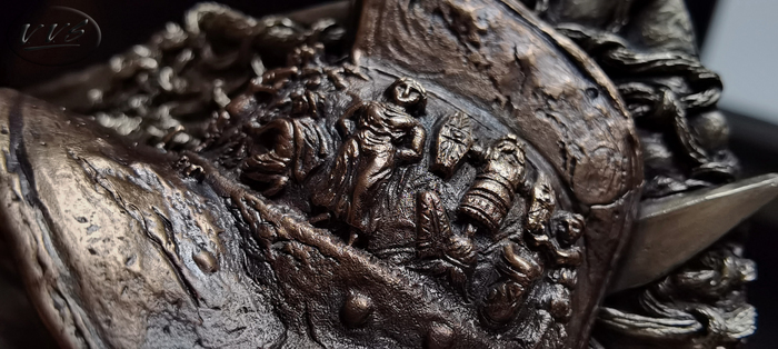 Пряжка будет сложная, многоуровневая, двухцветная. Это бесконечное количество мелких деталей с высокой детализацией, с до хренища фактур и текстур. Оттого к цели мы, т.е. я движемся медленно, но верно 😁 Проработка каждой детали композиции сжирает кучу времени, но оно того стОит. Цель - добиться максимальной схожести с оригиналом, конечно, насколько это возможно в таких размерах.