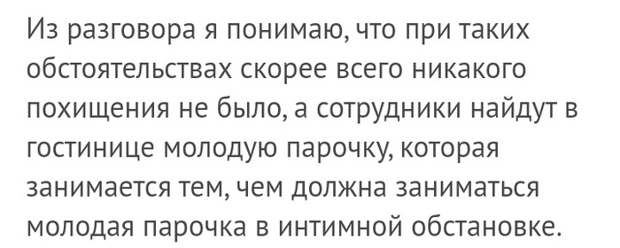 Жена подтвердила позже в полиции, что все было по обоюдному согласию. Она очень набожна и видит свое призвание в оказании помощи страждущим. А конкретно на этого бедняка ей указал сам Господь. И велел дать ему то, в чем тот нуждался.