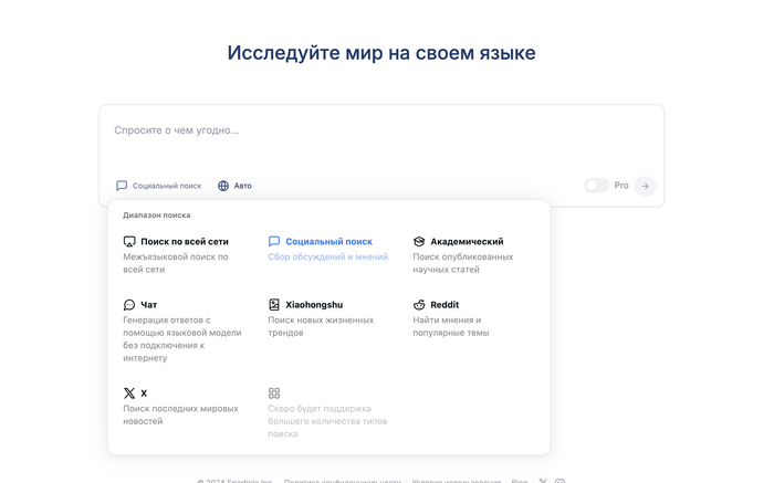 К примеру, если спросить “чем новый iPhone 16 Pro отличается от iPhone 15 Pro?” и выбрать “социальный поиск”, то сервис без VPN найдет информацию в Reddit, X, Facebook* (признана экстремистской на территории РФ) - очень удобно! Примечательно, что отдельно X и Reddit как источники доступны только платно) Так что ловите маленькую хитрость - используйте “Социальный поиск”.
