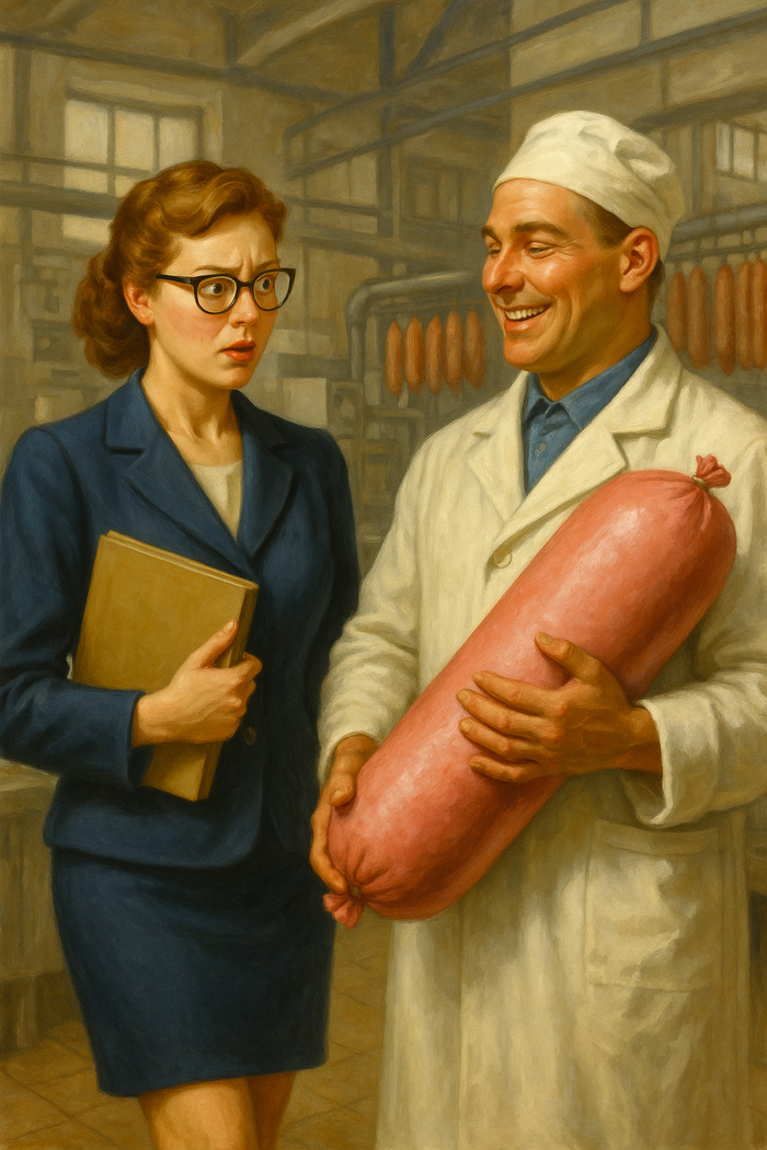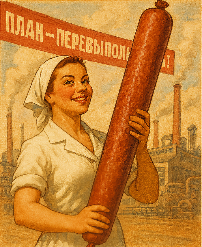 Как вы думаете, какие еще сюжеты из жизни колбасного завода можно обыграть в этом стиле? Буду благодарен за креативные идеи!
