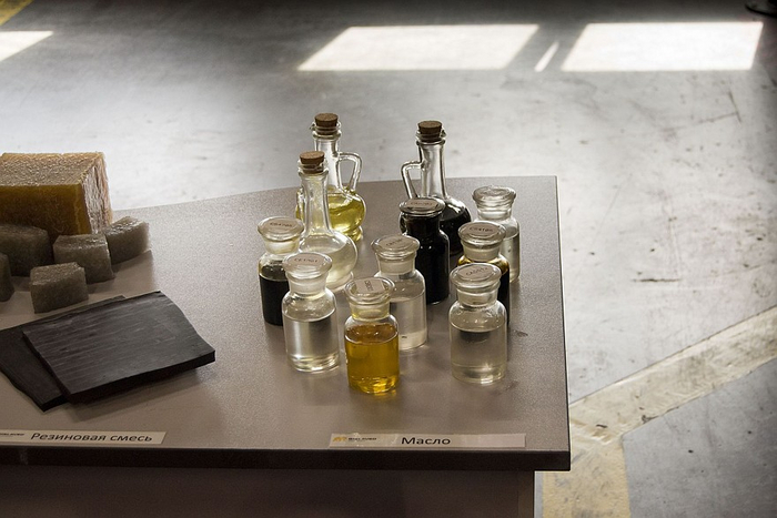 Начинается производство с цеха, где из сырья изготавливают резиновую смесь. В миксерах смешивают около десятка компонентов, в результате чего получают материал для будущей шины. Причём если миксеры (их два) заметят, что с сырьём что-то не так, смесь они делать не станут – такая защита от брака.