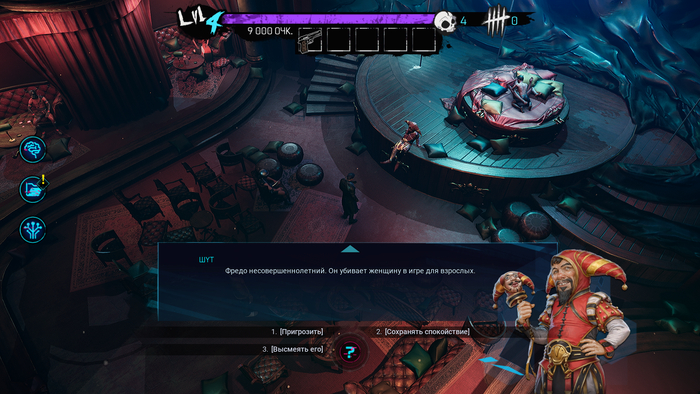 Вариантов полного проигрыша нет, повеситься на вентиляторе не получится. Можно провалить всё задание, но игра на этом не закончится, просто последствия аукнутся в дальнейшем. Собирая улики и разговаривая с людьми, геймдек получает противоречивую информацию, из которых нужно делать выводы в этаком аналоге чертогов разума из «Шерлока Холмса». То есть окончательный выбор того, как трактовать события, зависит не от игрового персонажа, а от самого игрока, которому тоже придётся думать. Информация, повторюсь, весьма противоречива, все говорят разное, и собрать абсолютно все улики/слухи и т.д. практически невозможно из-за ограничений по прокачке навыков, поэтому решение принимать нужно, исходя из нехватки данных. И если сам геймдек не умрёт, то на жизни и здоровье окружающих его умозаключения скажутся прямым образом.
