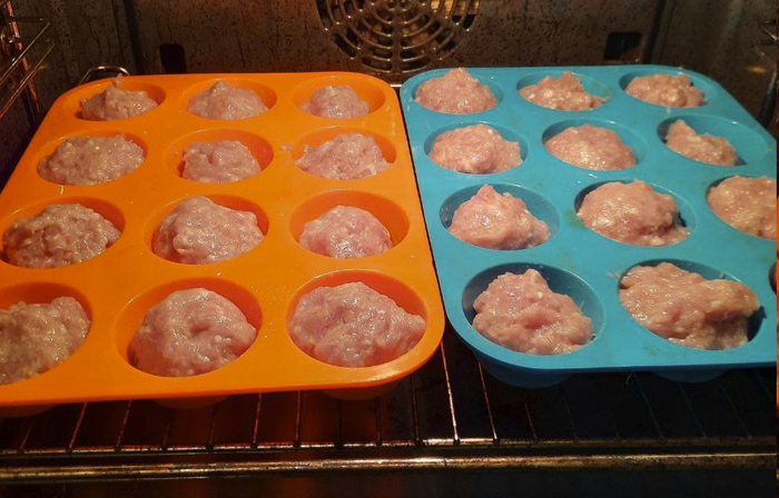 Перебили в фарш, по формам и при температуре 180-200 запекаем. Минут 30-40 на партию.