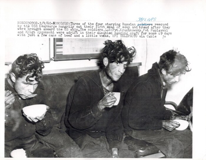 7 марта 1960 года в Тихом океане американцами подобраны четыре советских солдата, дрейфовавших на неуправляемой барже практически без воды и продовольствия на протяжении 49 дней.