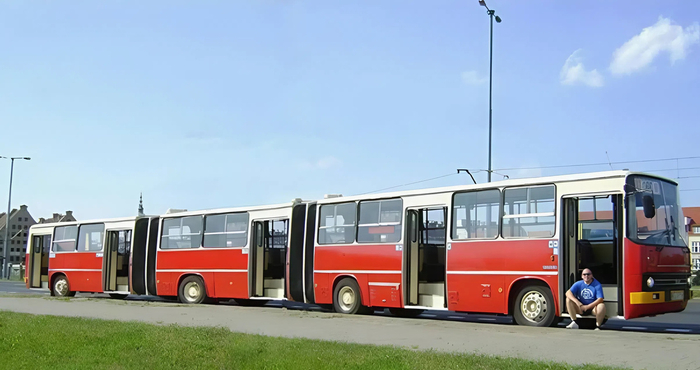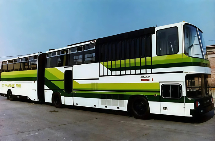 История сочлененных Икарусов началась в 1956 году, когда венгры купили лицензию у немецкой компании Kässbohrer. Именно от немцев пришли защитные меха-шторы, которые и дали народное название "гармошка".