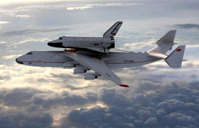 Транспортировка орбитального космического корабля «Буран» на выставку в Ле Бурже (Франция) самолетом Ан-225 «Мрия». СССР, 1989 год.