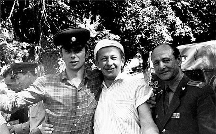 Олег Даль и Евгений Евстигнеев в исправительно–трудовом профилактории в Алма–Ате на съемках спектакля с театром "Современник", 1968 год.
