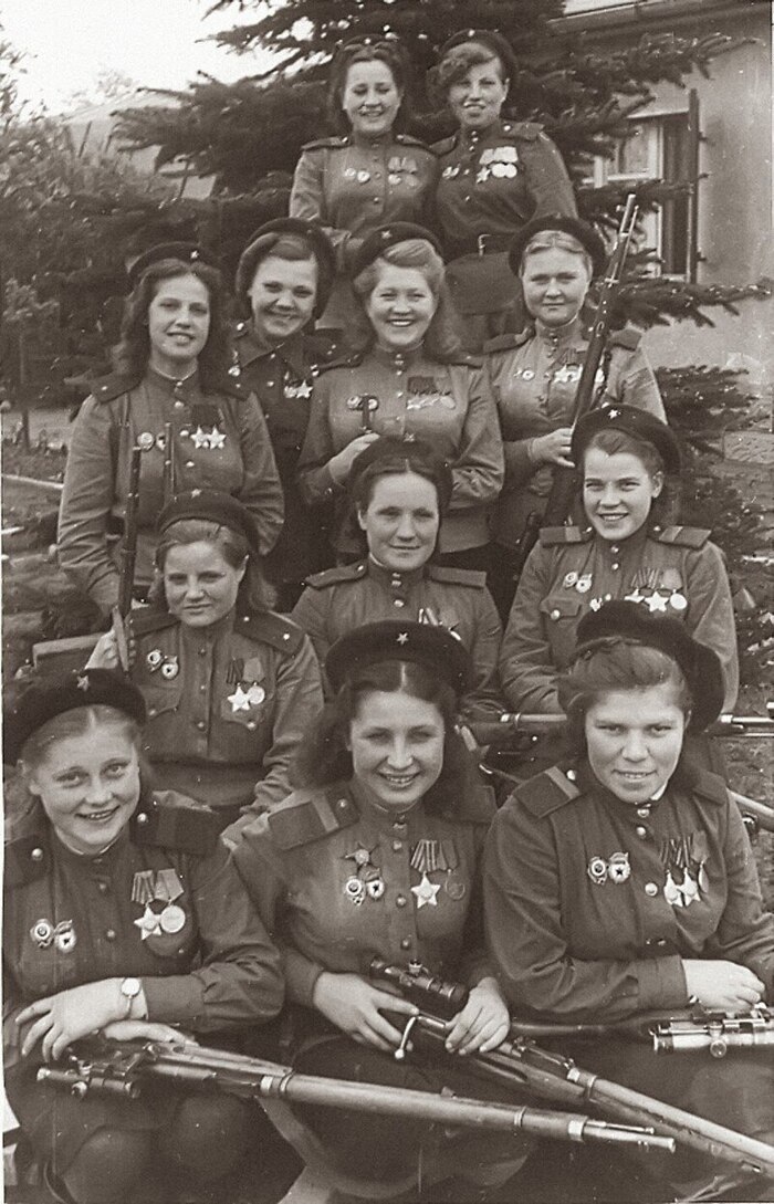 Девушки-снайперы 3 ударной армии 1 Белорусского фронта. На их счету - 775 убитых фашистов.
