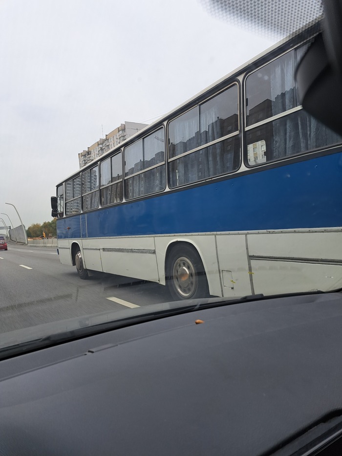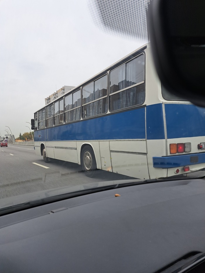 2024.10.04. Около 9:10. Встретил этого редкого по нынешним временам красавца в необычной бело-синей ливрее сегодня утром по дороге на работу. Уверенно летел под 100 по МСД в сторону области. Номер маршрута не разглядел.