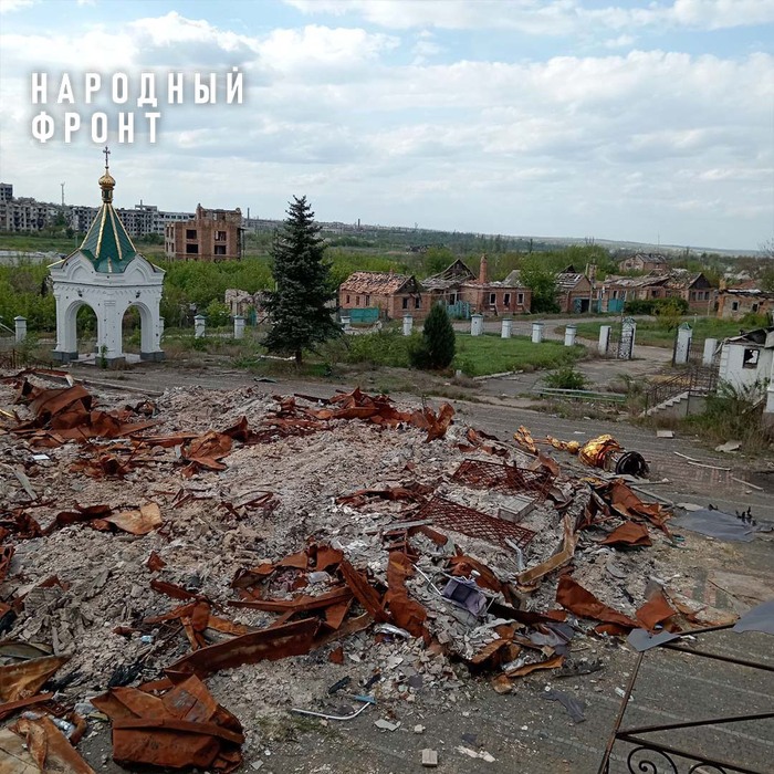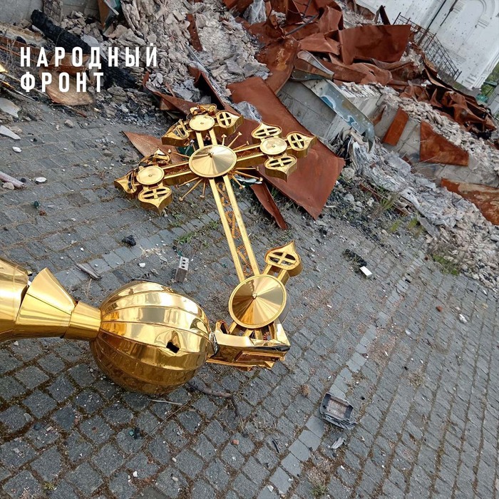 Бывает бойцы заходят в разрушенные храмы при обходе местности, поднимают с земли кресты, ставят их. На фото – один из таких. Храм полностью разрушен, только крест остался.