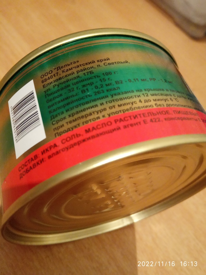 Производство "Дельта" Камчатка. Про эту подделку уже во всех газетах и интернетах писали: "На банке указано, что икру производит компания ООО «Дельта», зарегистрированная в поселке в Камчатском крае. Никаких контактов для обратной связи не указано. Если забить указанный на банке адрес в любой интернет-поисковик, одной из первых выпавших ссылок станет предупреждение управления Роспотребнадзора по Саратовской области о предприятиях-призраках. Это значит, что указанное наименование или местонахождение фирмы не соответствует действительности. В списке таких фирм нашлась и та, что была указана на нашей банке с икрой. Таким образом, продукция, на упаковках которой указаны вышеперечисленные наименования и адреса, произведена неизвестными лицами, в связи с чем не соответствует требованиям действующего законодательства и не может находиться в обороте, — говорится в предупреждении.