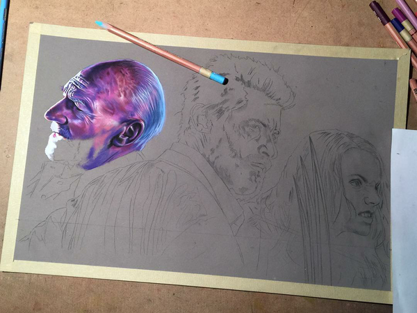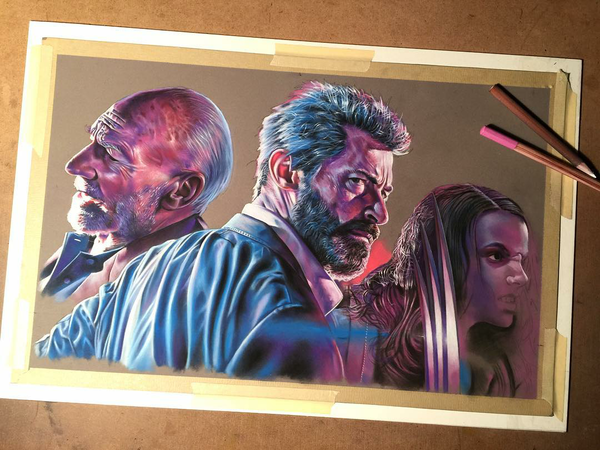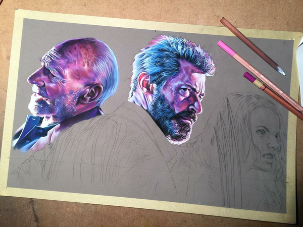 Мой приятель художник Виктор Гардуно, с которым мы давно общаемся в Инстаграме, сделал арт по фильму о Росомахе "Логан". Работа заняла семь дней. Акварельные карандаши и пастель.