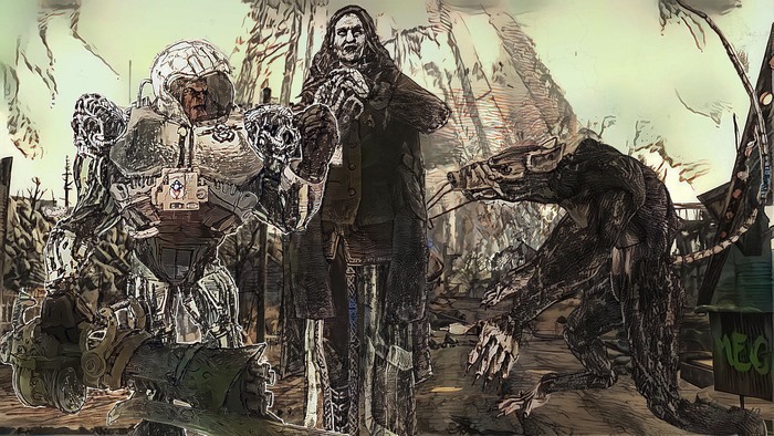 Так вот, в отличие от русского Тарковского швейцарский художник с типично немецким именем Сами Азайез настолько проникся духом романа типично русских писателей Аркадия Натановича и Бориса Натановича, что нарисовал Рэда Шухарта, как заметил камрад nLongo, скорее всего, не вспомнивший сюжет книги, «как какого-то дембельнувшегося селюка». И правильно – сталкер недавно откинулся с кичи и бичует без средств к существованию.