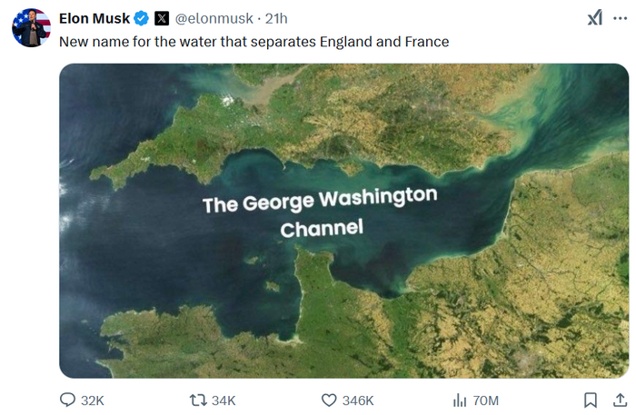 Пишет, что новое название Ла-Манша будет Пролив имени Георгия Вашингтона.