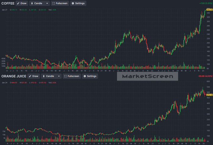 Как мы уже писали ранее, Мосбиржа подумывает в этом году запустить фьючерсы на кофий. И апельсиновый джюс.